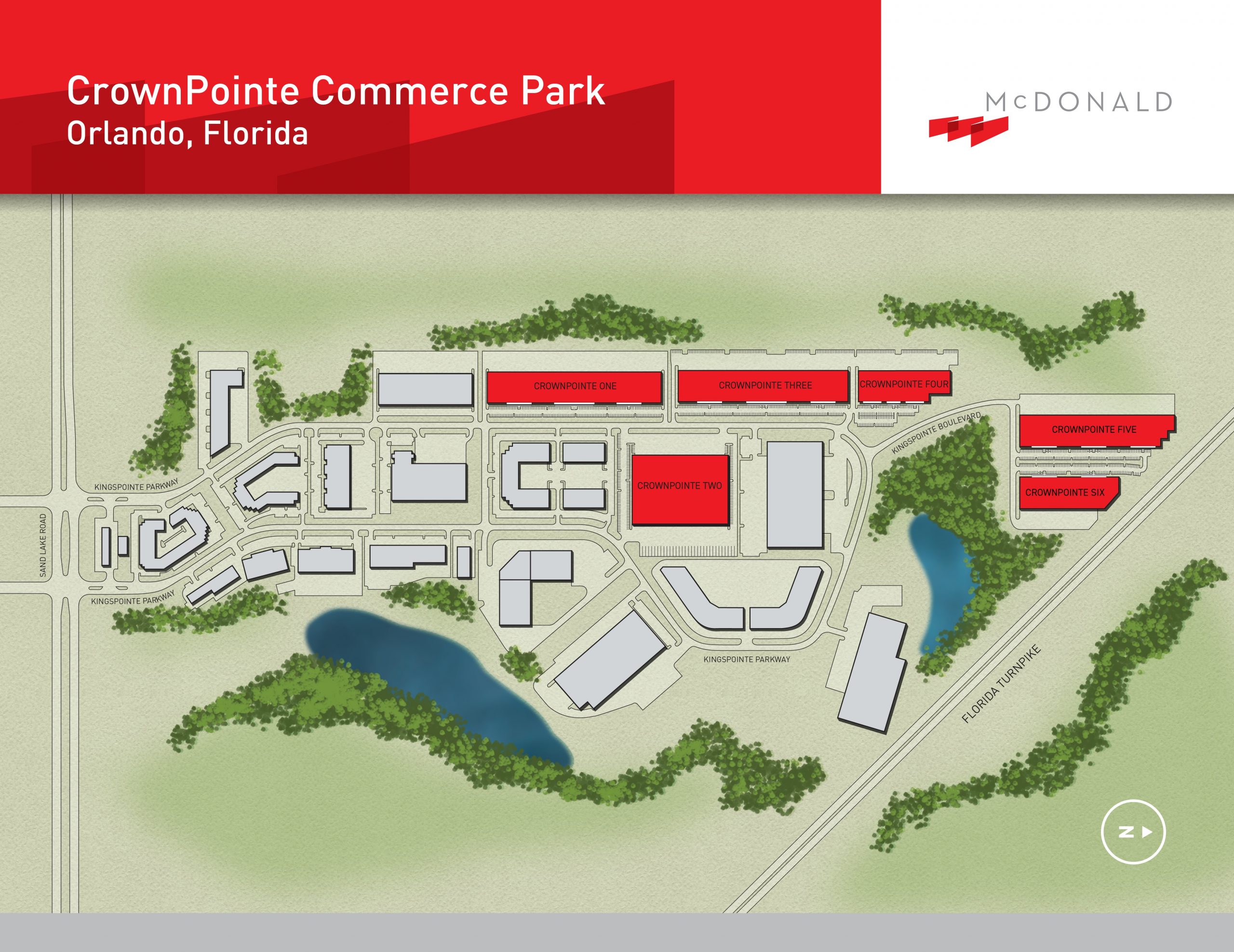 CrownPointe Commerce Park is a strategically located industrial development in Orlando, Florida, offering convenient access to I-4, Florida’s Turnpike, John Young Parkway, and the Beachline Expressway. McDonald developed six industrial buildings within the park over three phases. Phase I, completed in 2000, included one rear-load and one cross-dock distribution building totaling 402,932 square feet. Phase II, delivered in 2004 and 2006, added two rear-load distribution buildings totaling 266,078 square feet. Phase III, completed in 2007, included two additional rear-load distribution buildings totaling 255,499 square feet. McDonald sold all six buildings in separate transactions upon completion of each development phase.